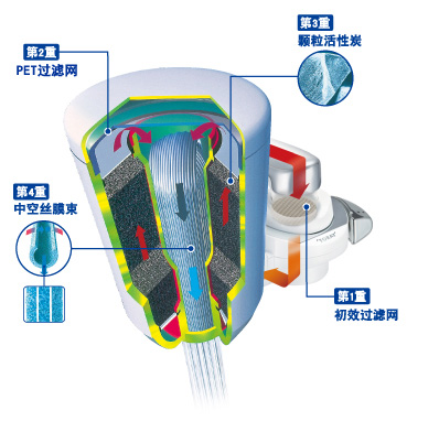 - 东丽核心技术中空丝膜,过滤精度高达0.1微米。采用多层结构,能强力去除铁锈、细菌和有机物,有效去除余氯、浑浊物,保留对人体有益 的矿物质。这种中空丝膜在医疗领域被广泛应用于血液透析及人工肾脏领域。